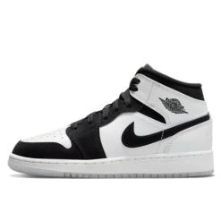 Cette Air Jordan 1 Mid adopte les mêmes codes que la Air Jordan 1 Mid Carbon. Avec son empeigne en cuir blanc, la Air Jordan Mid Diamond arbore un style très classique, cependant réhaussé par quelques touches de noir. En effet, le mudguard, le swoosh, le col, le branding et les lacets se parent d’un daim noir qui offre contraste et volume à la Air Jordan. Quant à la signature de la marque, elle se présente sur cette Jordan 1 de manière un peu différente puisque le Jumpman de la languette est entouré d’un losange illustrant la forme d’un diamant.