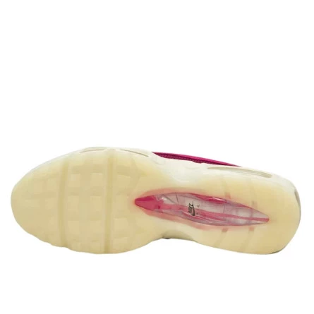 La Anatomy of Air se distingue par sa combinaison de couleurs saisissantes et ses matériaux de haute qualité. Imaginée dans un colorway alliant des tons de beiges à des nuances de rouge, sa tige affiche un dégradé de couleurs flamboyantes. Un rouge bordeaux très sombre se place au-dessus de la midsole beige, où se loge à l’intérieur la fameuse bulle d’air de la technologie Nike Air Max, iconique des sneakers Air Max 95. Cette dernière permet d’offrir un amorti et une sensation de légèreté à chaque pas. Un “University Red” ainsi qu’un rose clair et pâle se superposent à cette première couleur.