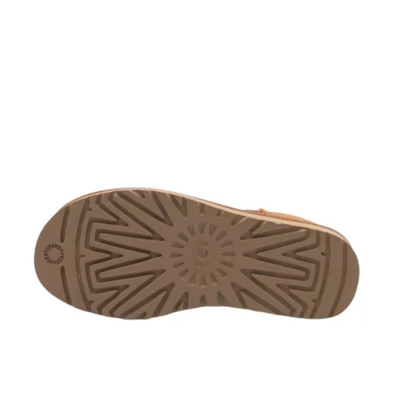 Le design intègre une semelle plateforme épaisse, non seulement pour une élévation subtile, mais aussi pour une présence affirmée. La semelle extérieure est crantée pour une adhérence optimale, ce qui rend la UGG Ultra Mini Platform Chestnut pratique et sûre sur des surfaces glissantes.