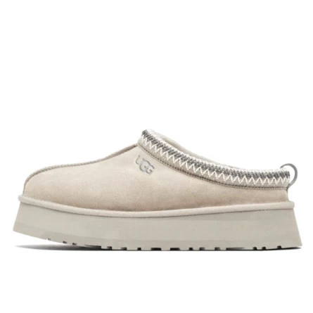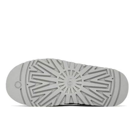 Cette UGG Tazz est accentuée par un logo UGG distinctif embossé sur le côté, ce qui confère un cachet de marque reconnaissable. Le contour de la cheville est orné d’une finition en laine bouclée, ajoutant une texture contrastante et visuelle qui est aussi fonctionnelle, car elle aide à isoler et à emprisonner la chaleur. La semelle extérieure est souvent en caoutchouc avec des motifs de traction, ce qui rend la UGG Tazz beige adaptée pour une utilisation intérieure et extérieure limitée. La UGG Tazz femme et UGG Tazz homme se caractérise également par son talon légèrement rehaussé, qui soutient la voûte plantaire et ajoute au confort global de la chaussure.